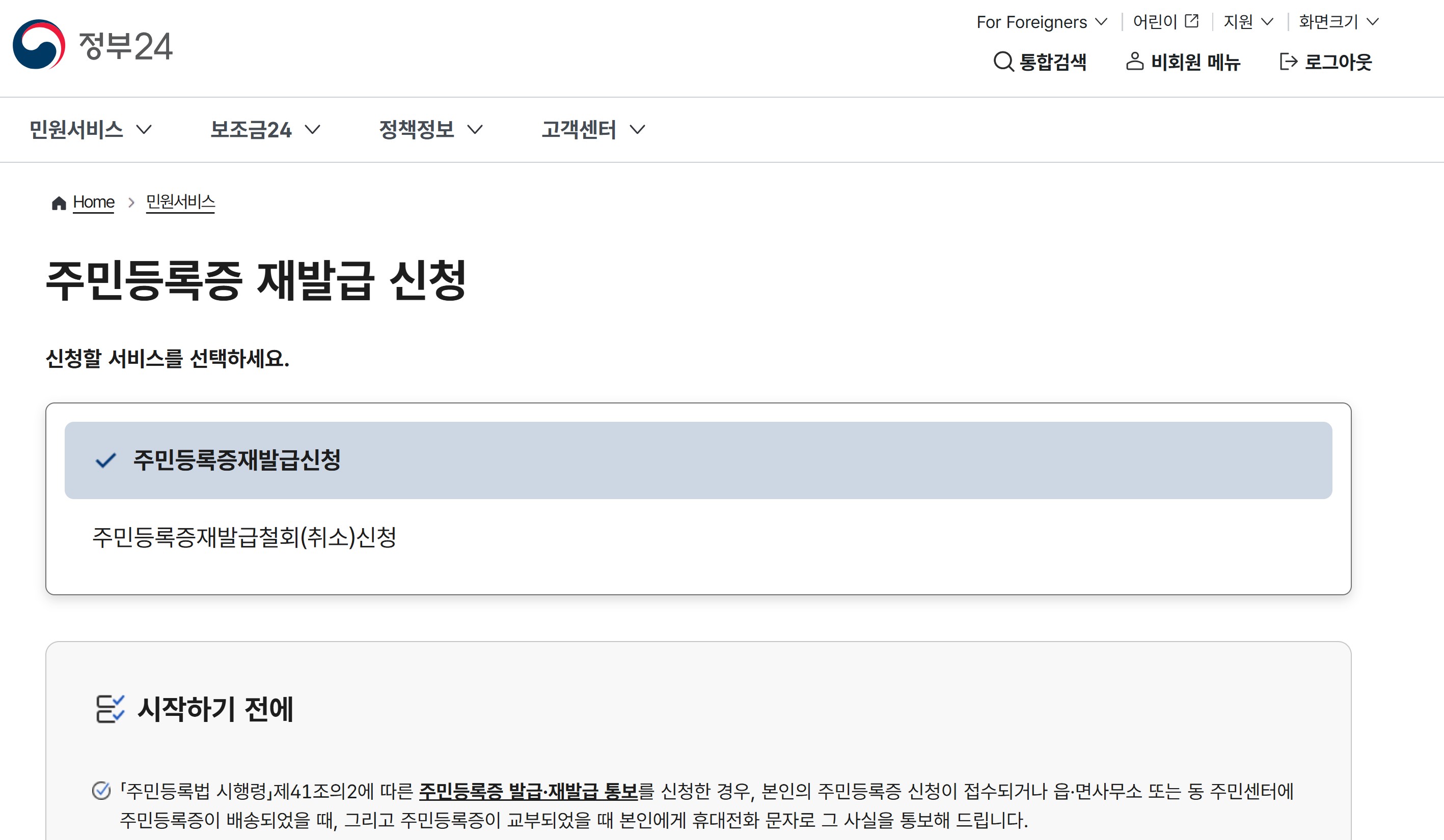 주민등록증 재발급 신청 | 민원안내 및 신청 | 정부24