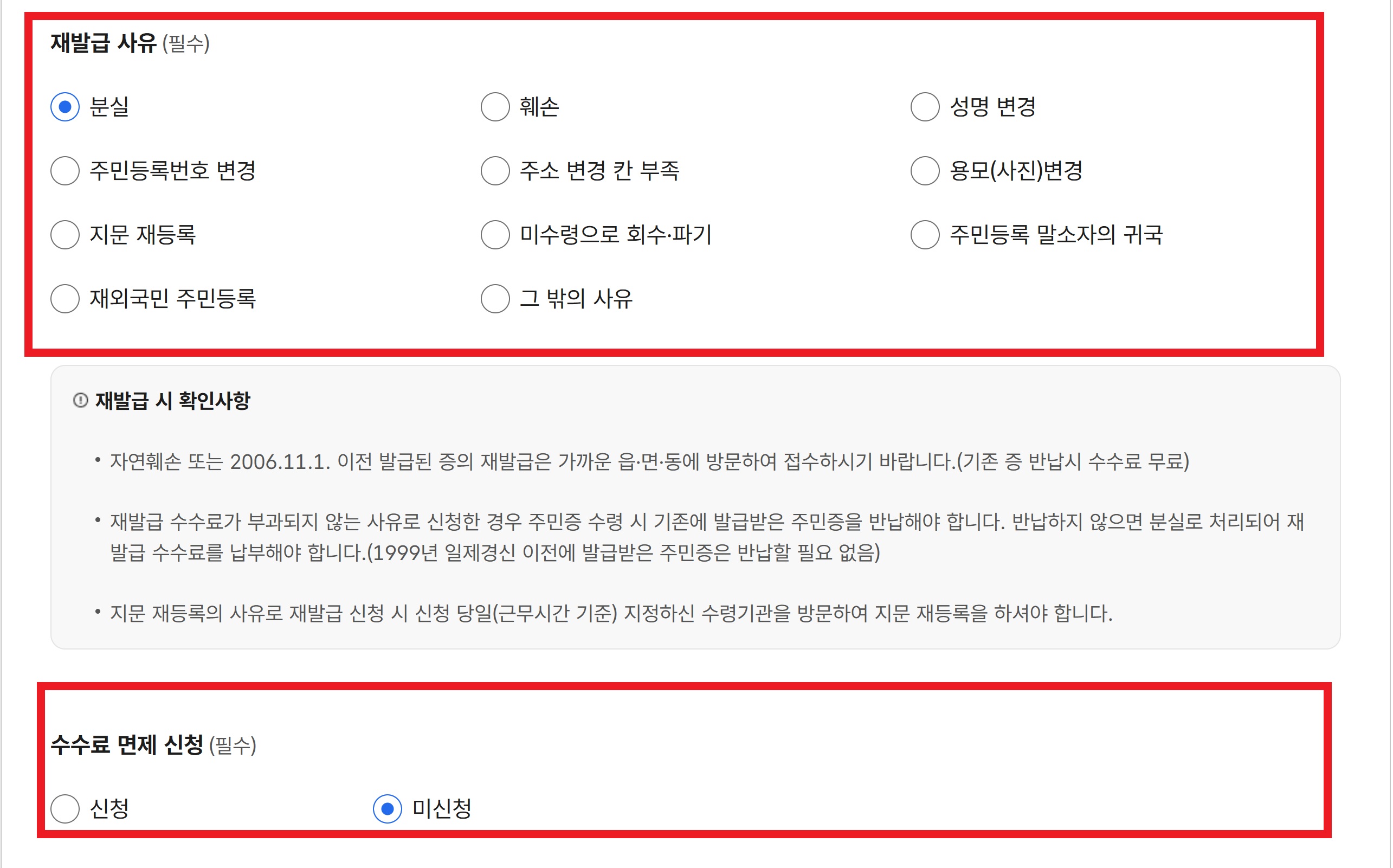 - 기존 주민등록증을 분실, 훼손, 정보 변경 등의 사유로 재발급이 필요한 자