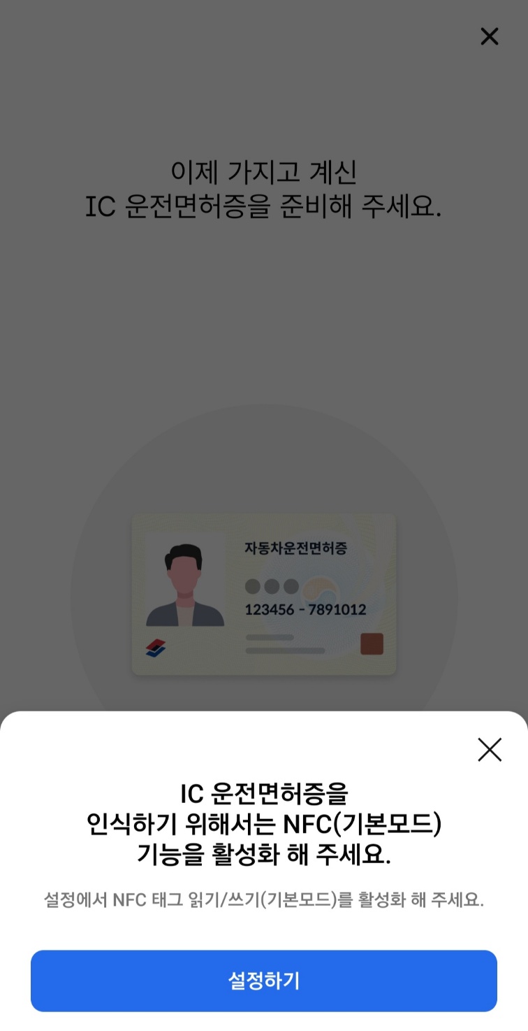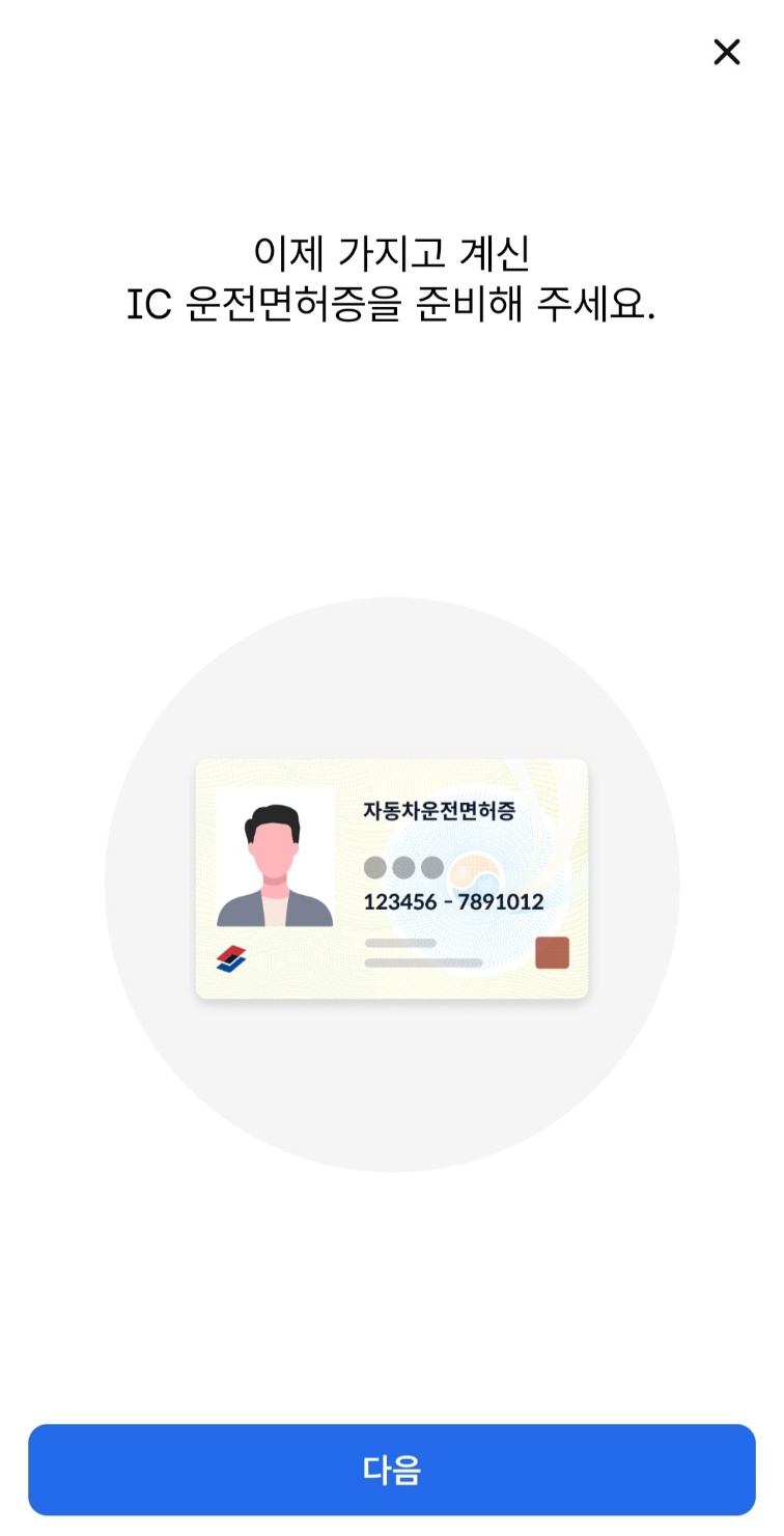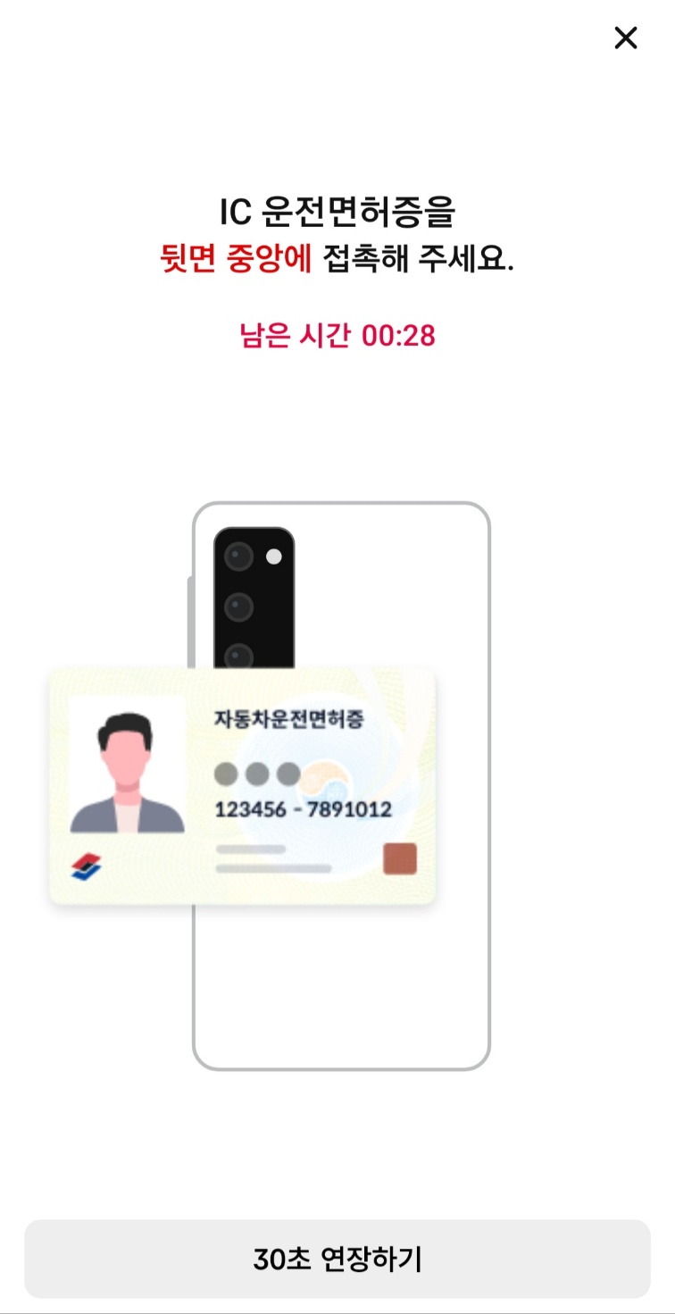 위 이미지와 마찬가지로 IC운전면허증을 휴대폰 뒷면에 갖다 대주세요!