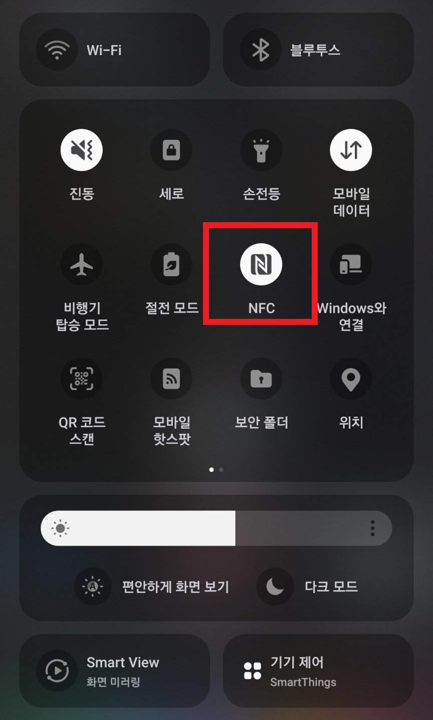휴대폰 상단바를 내려 NFC 기능을 활성화해주세요!
