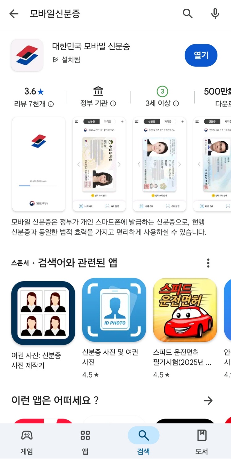 구글 플레이스토어 또는 앱스토어에서 ‘모바일 신분증’을 검색한 뒤 설치하세요.