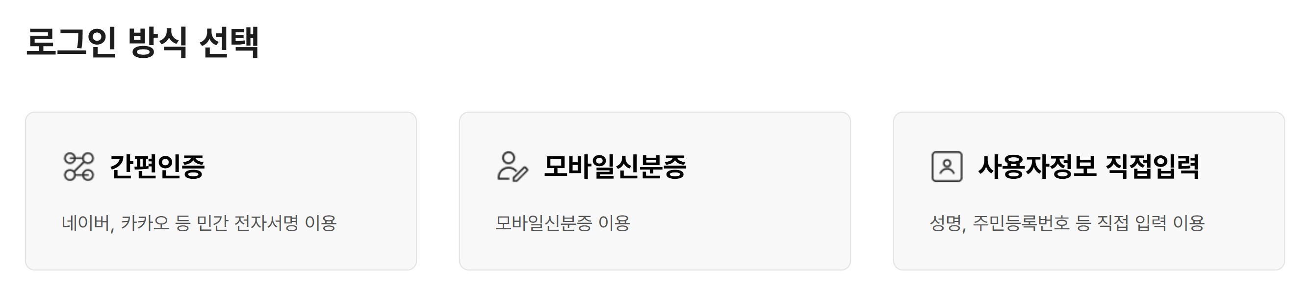 간편인증, 모바일신분증, 사용자정보 직접입력 3가지 모든 방법을 다 인증해 보았는데요.