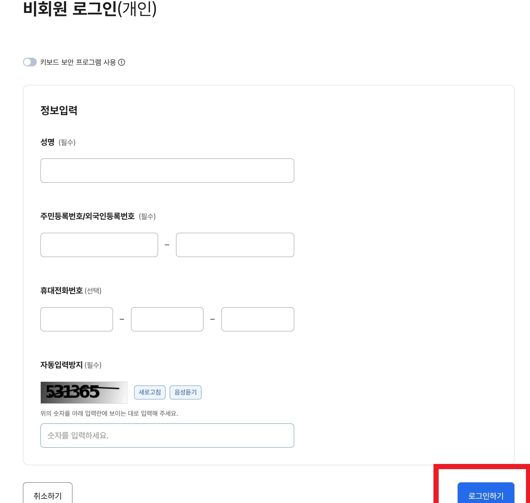 저는 비회원 신청하기로 하겠습니다.