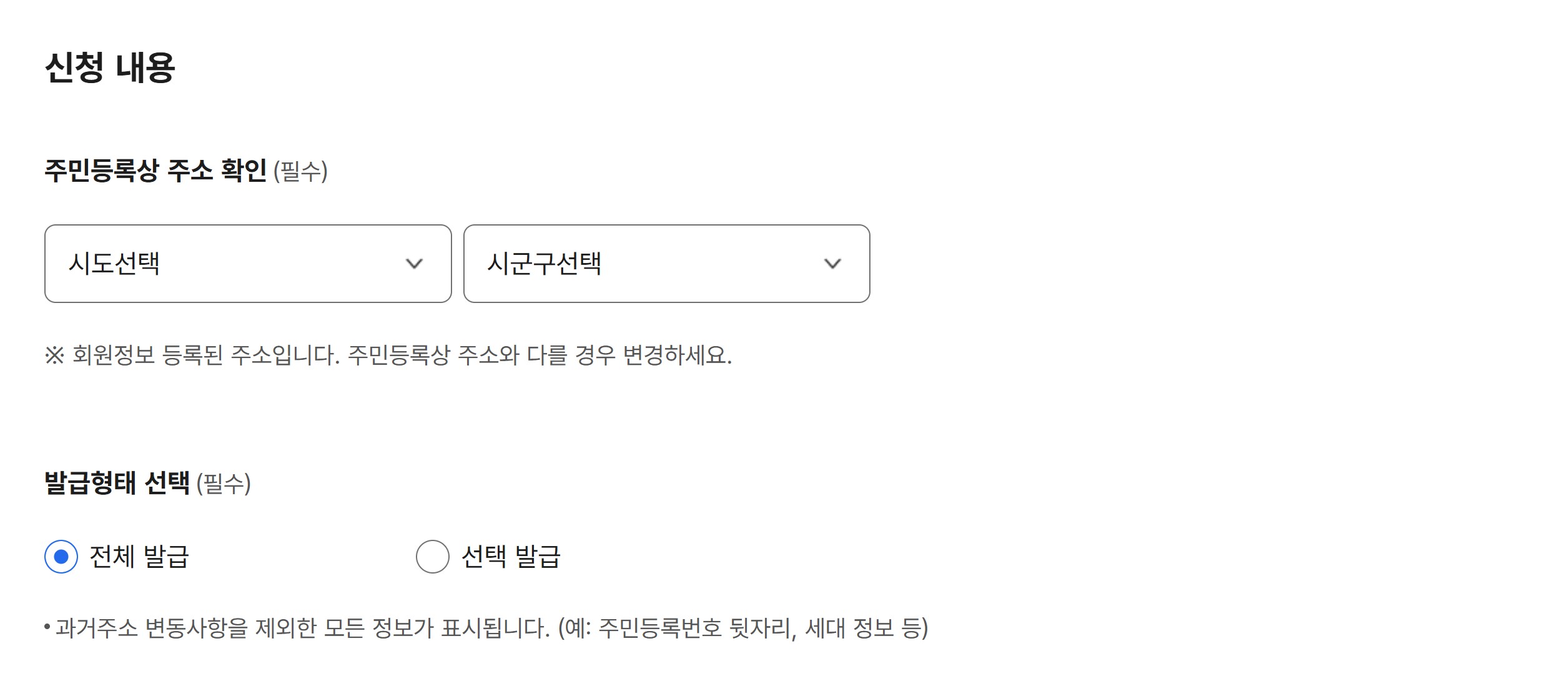 타인 발급 여부 세대원에 한해 가능, 타인은 발급 불가