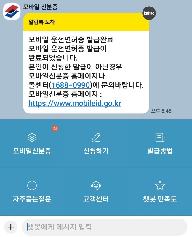 이렇게 해서 모바일 운전면허증 발급이 완료되었습니다.