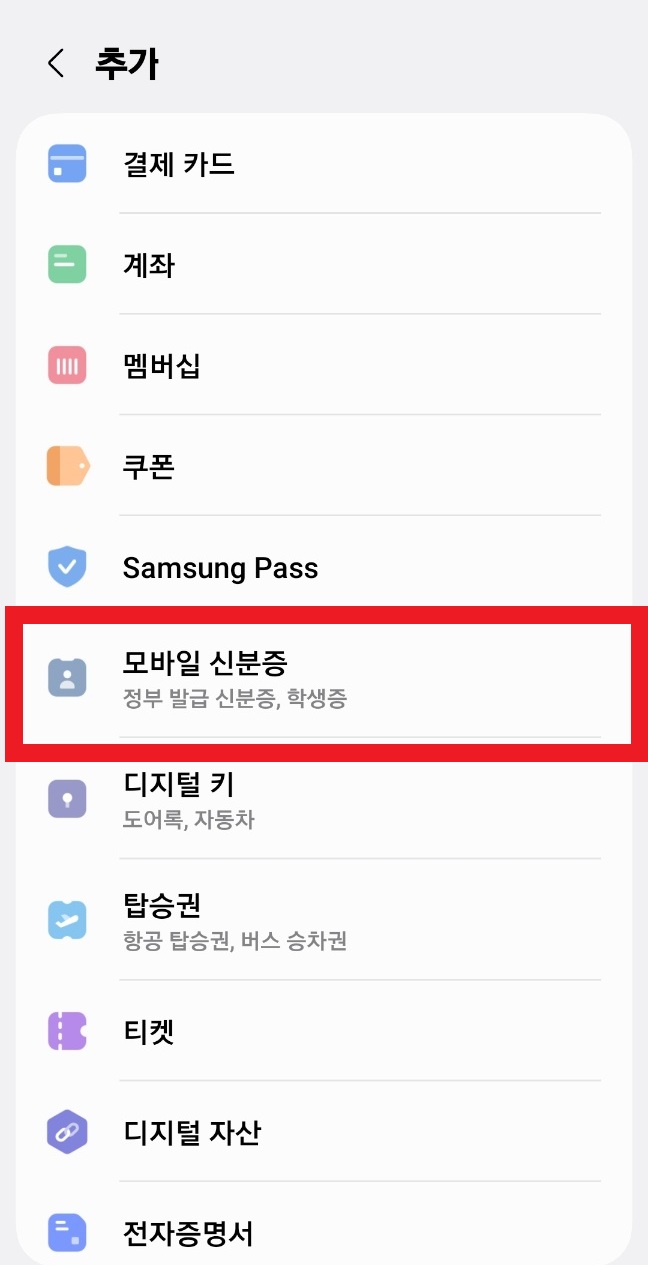 삼성 Wallet에서 모바일 신분증 항목 선택하기