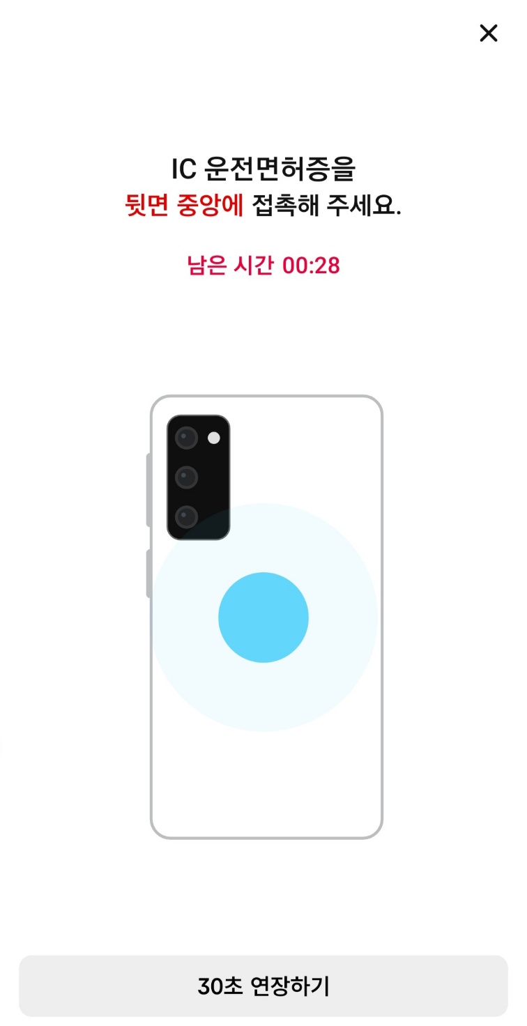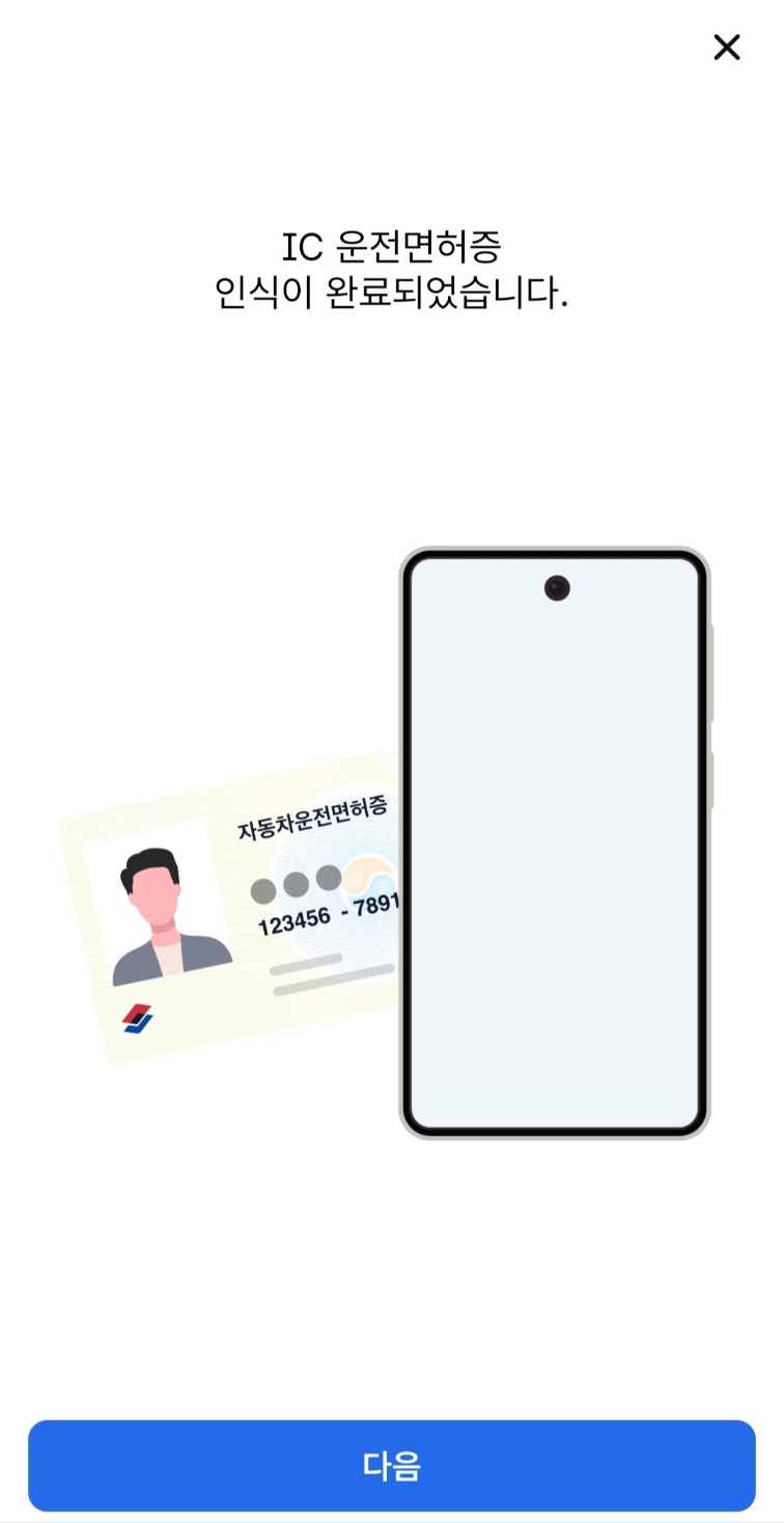 위 이미지와 마찬가지로 IC운전면허증을 휴대폰 뒷면에 갖다 대주세요!