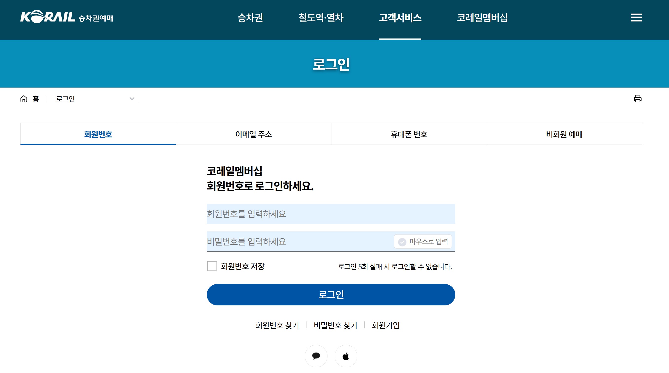 - 비회원 예매자도 이름, 전화번호, 비밀번호(5자리 숫자) 입력으로 언제든지 승차권 확인 가능
