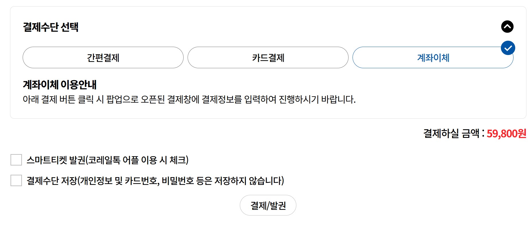 ▶ [결제/발권]을 클릭하면 완료됩니다.