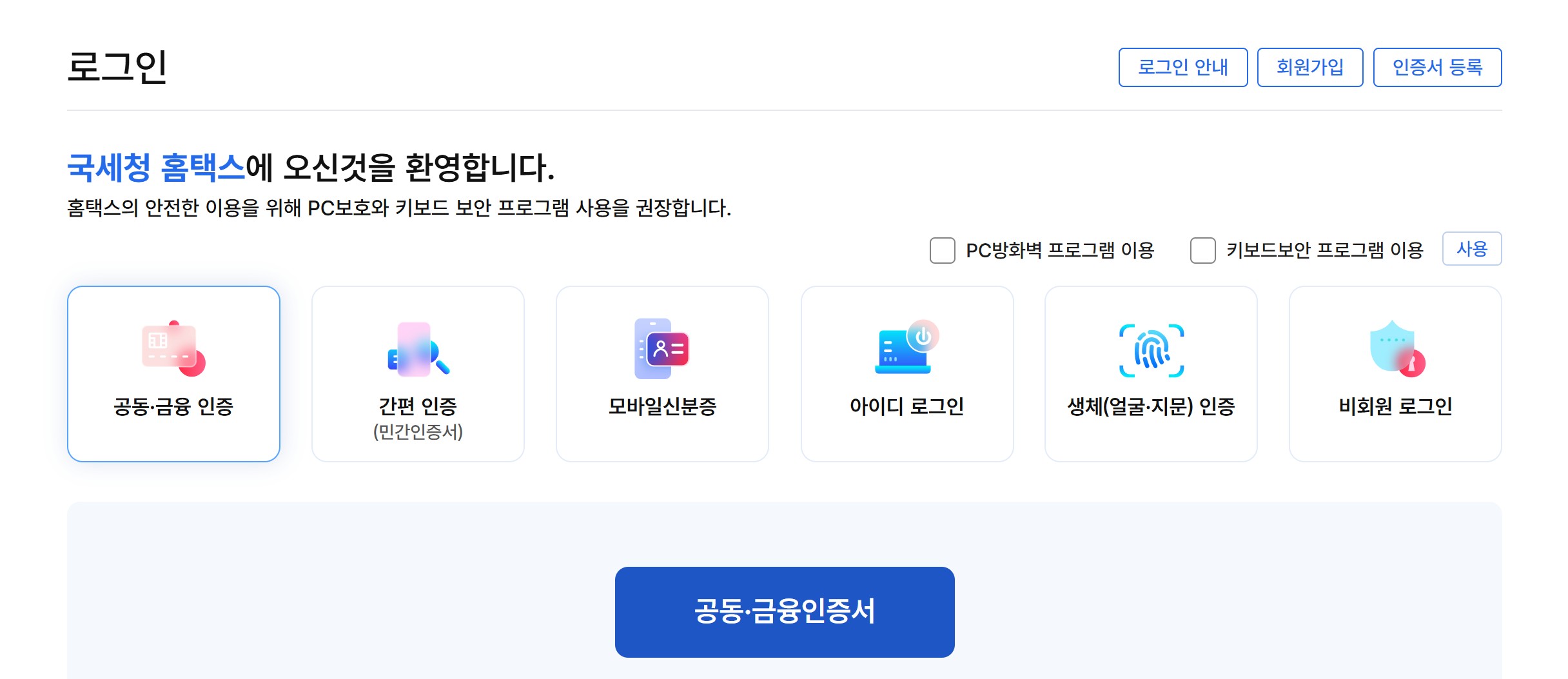 | 최초 등록 | 홈택스에서 1회 인증 수단 등록 필요 |