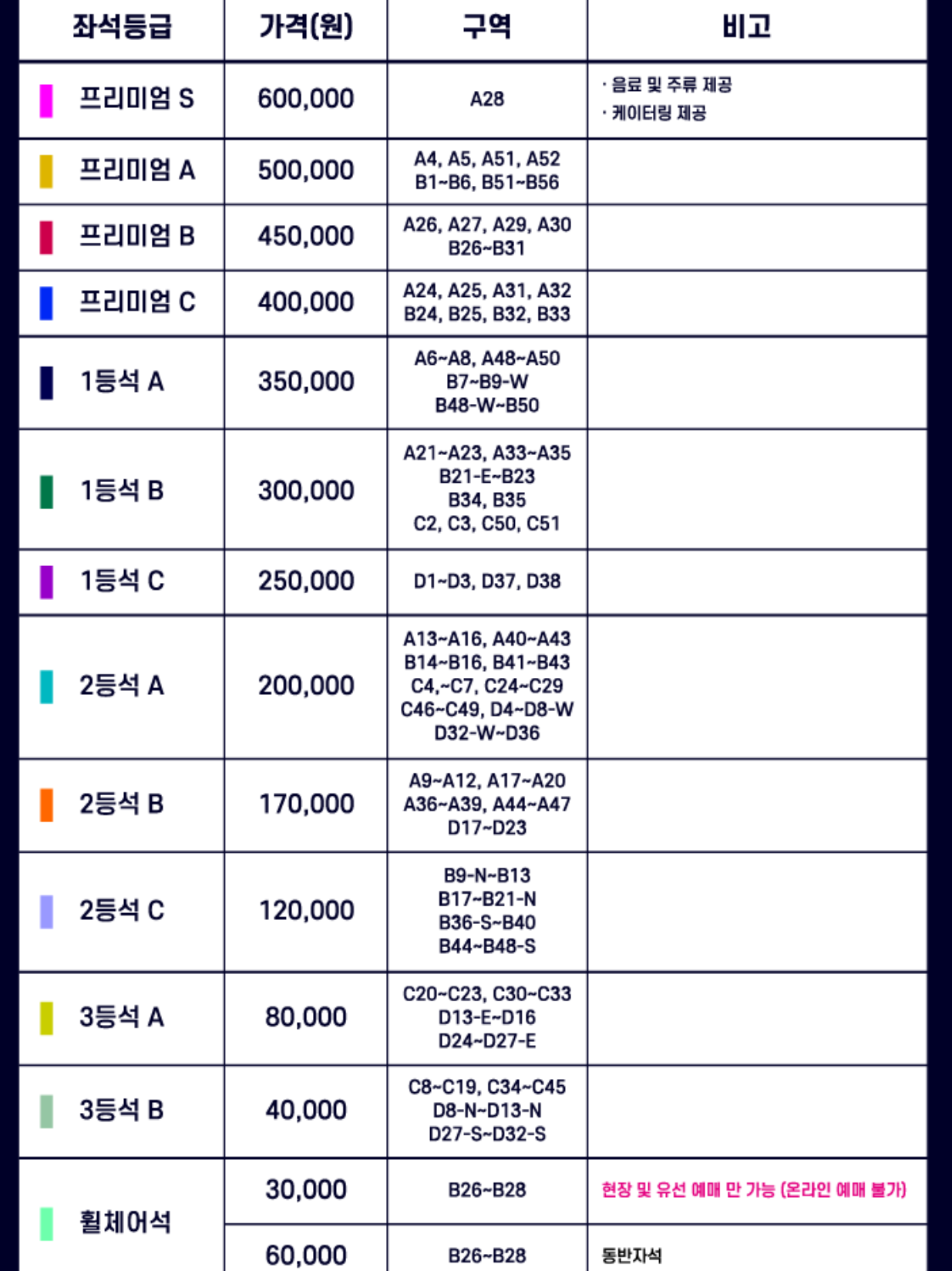 ⚠ 좌석 구역은 예매 페이지에서 위치도 확인 가능하며, 구매 전 꼼꼼한 확인 권장